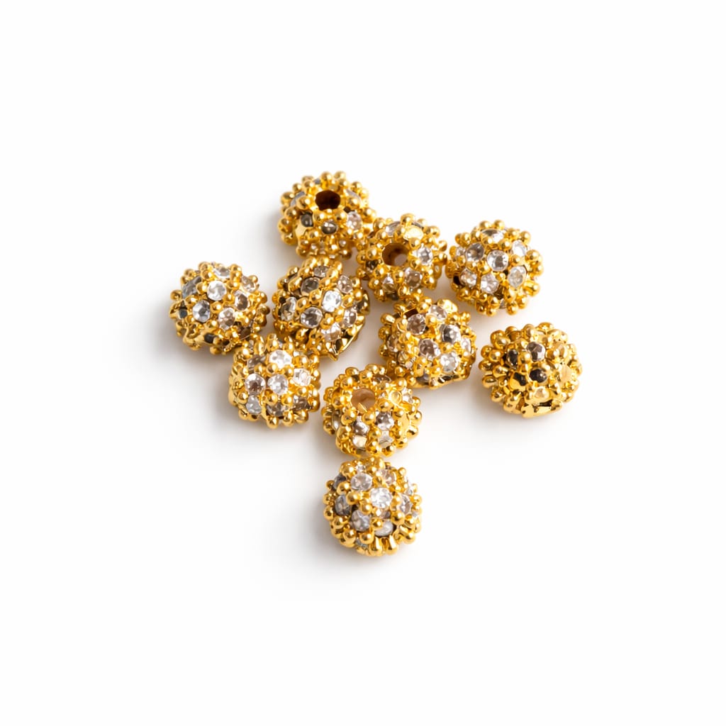 nhance your jewellery creations with these premium Gold Plated Designer AD Balls. Beautifully studded with sparkling American Diamonds (AD stones), these round beads feature intricate detailing that gives a rich and luxurious look.