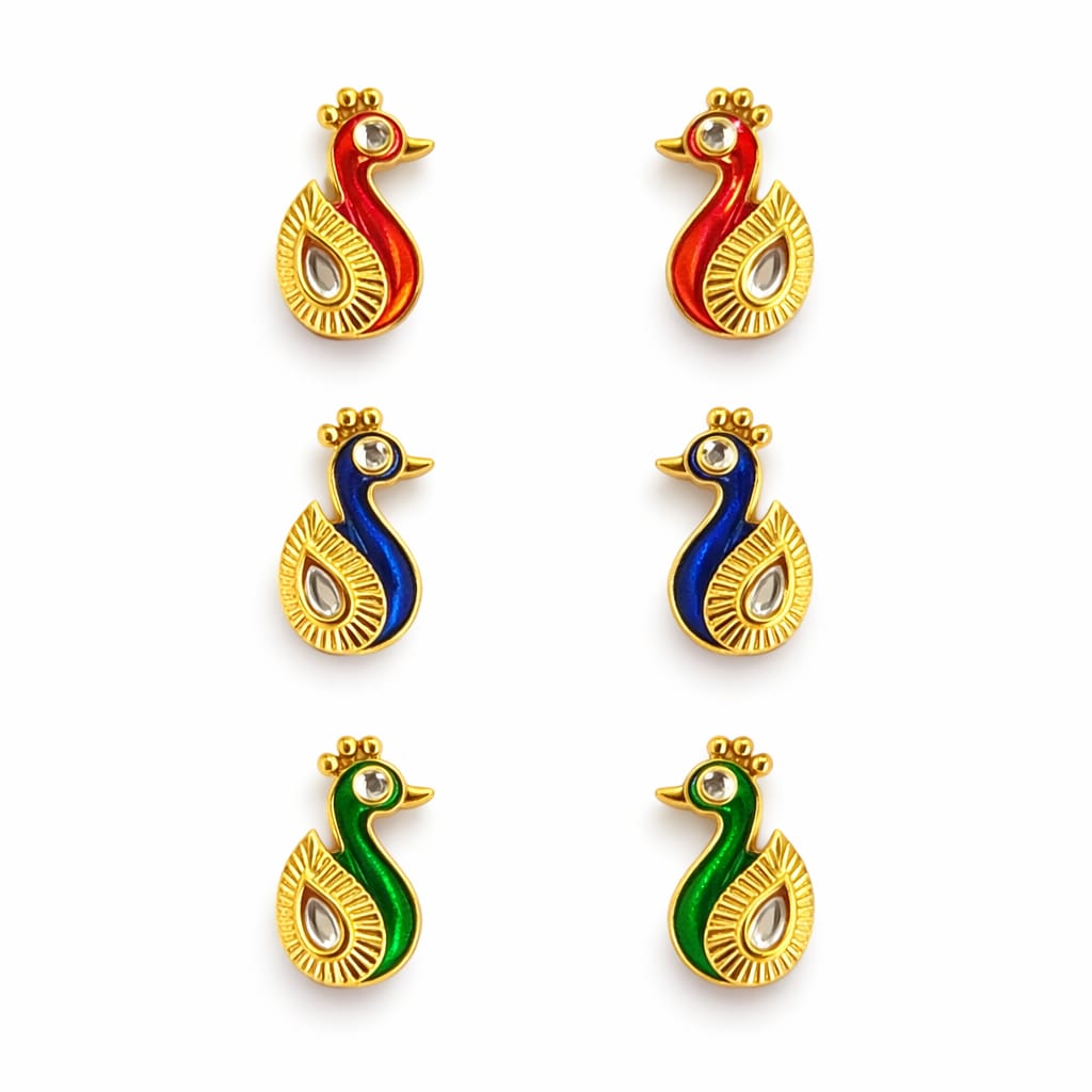 Add a touch of elegance to your jewellery creations with these beautifully designed Peacock Shape AD Kundan pieces. Crafted with premium quality gold-plated finish, these charms feature vibrant enamel colors (Red, Blue, and Green) combined with sparkling AD stones, giving a rich and traditional look. Perfect for making earrings, pendants, mangalsutra, Kolhapuri saaj, and other ethnic jewellery designs. Lightweight, durable, and eye-catching.
